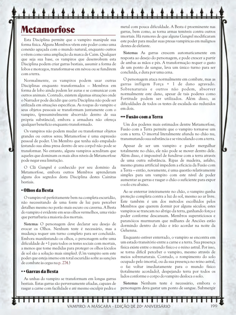 Esta Disciplina permite que o vampiro manipule sua este poder para mudar suas presas vampíricas em malignos