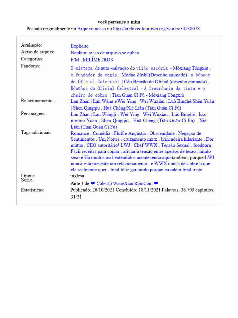 Estatísticas: Publicado: 26/10/2021 Concluído: 18/11/2021 Palavras: 38.703 capítulos: