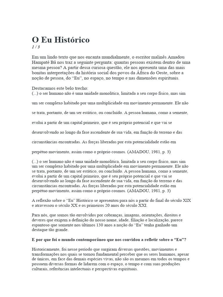 A reflexão sobre o “Eu” Histórico se apresentou para nós a partir do final do século XIX