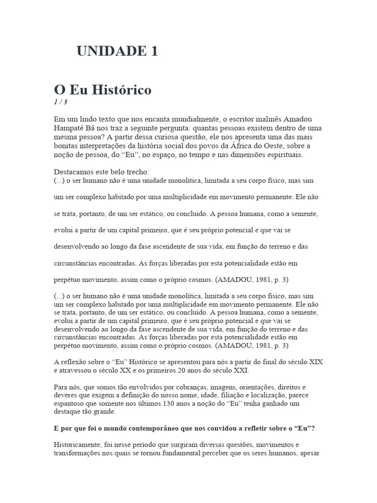 (...) o ser humano não é uma unidade monolítica, limitada a seu corpo físico, mas sim