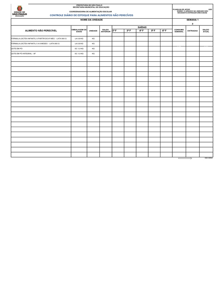 CONTROLE DIÁRIO DE ESTOQUE PARA ALIMENTOS NÃO PERECÍVEIS