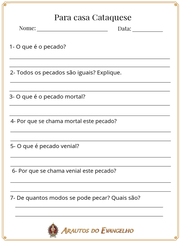 pecado. Como para casa, de agora em diante, todos os dias, ao