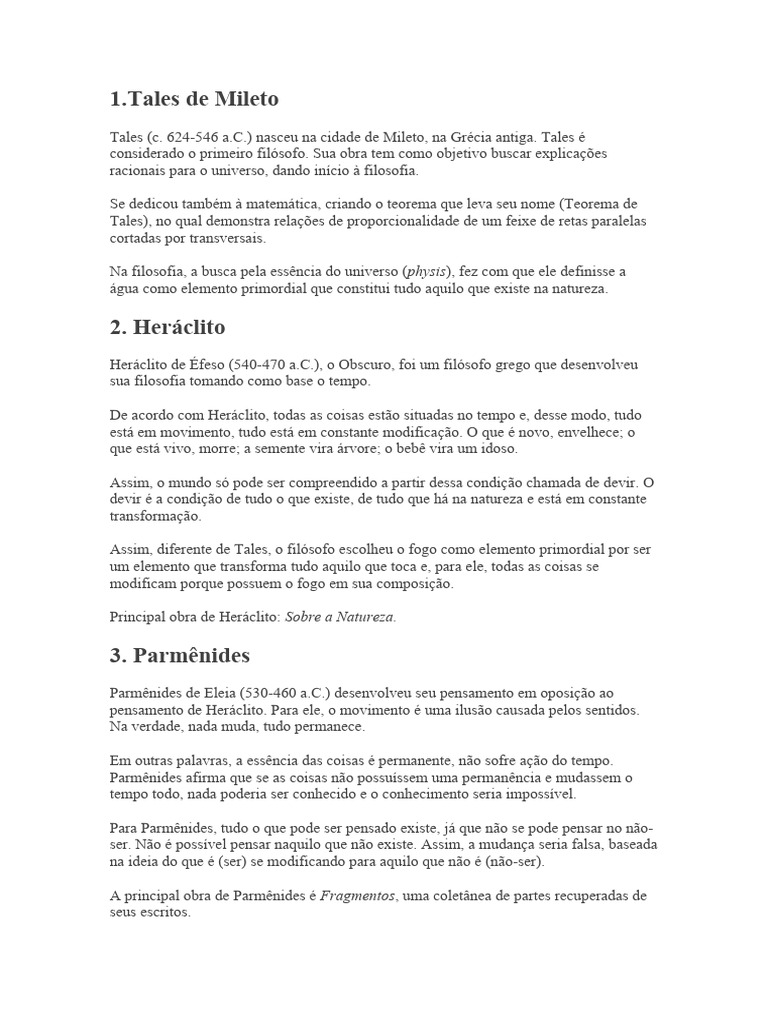 considerado o primeiro filósofo. Sua obra tem como objetivo buscar explicações