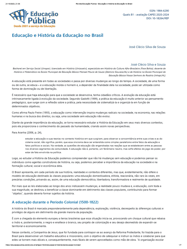 21/10/2023, 21:35 Revista Educação Pública - Educação e História da Educação no Brasil