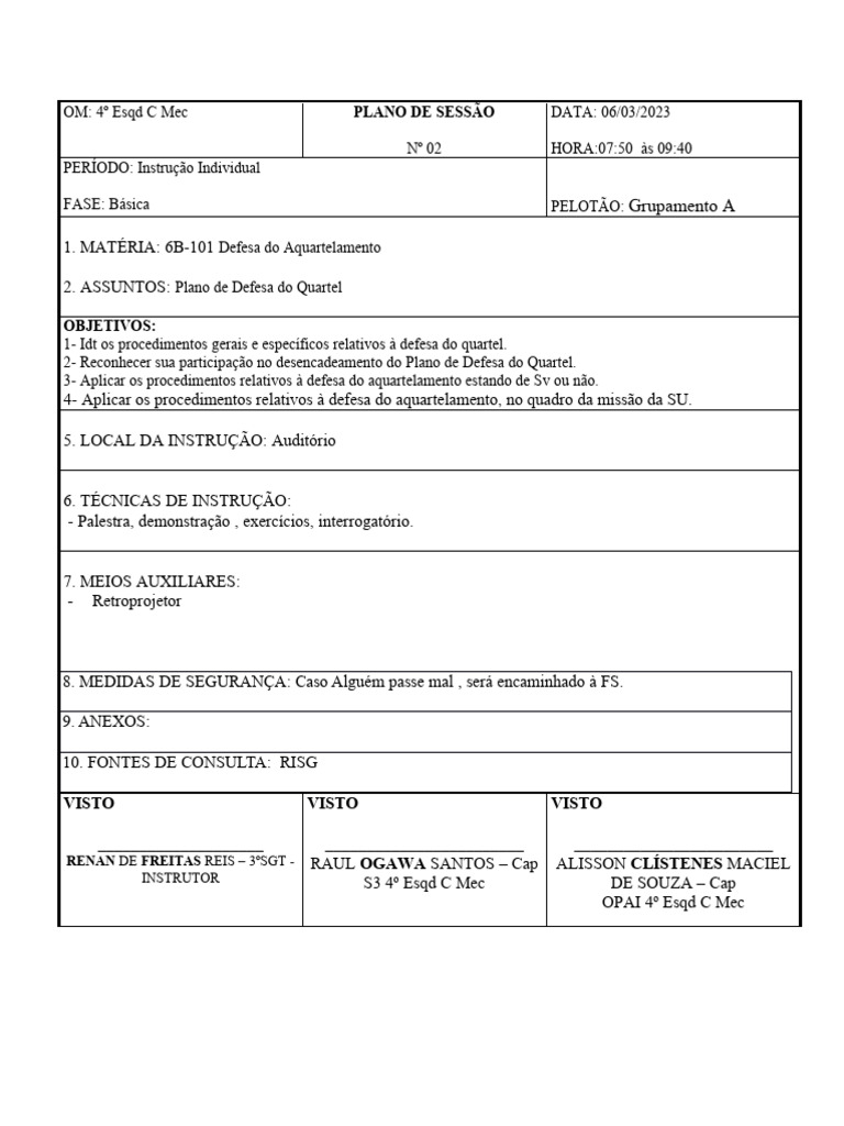 OM: 4º Esqd C Mec PLANO DE SESSÃO DATA: 06/03/2023