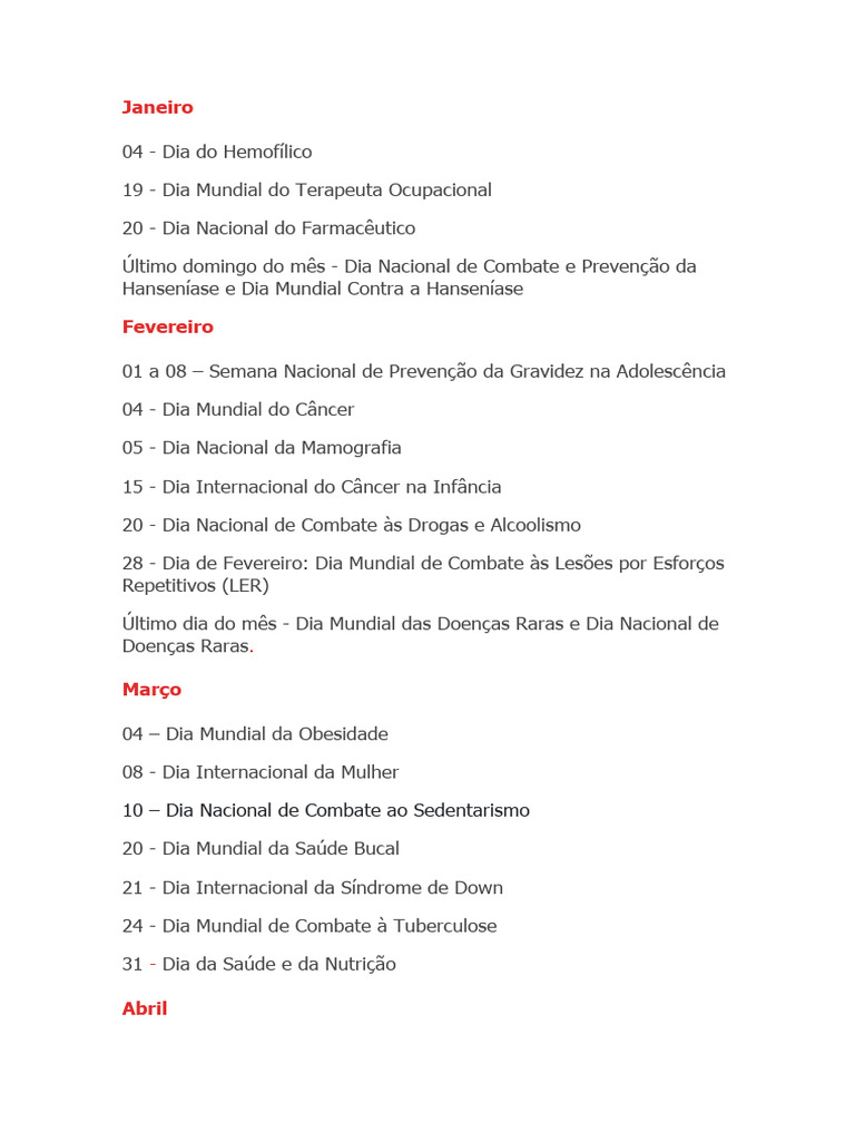 28 - Dia de Fevereiro: Dia Mundial de Combate às Lesões por Esforços