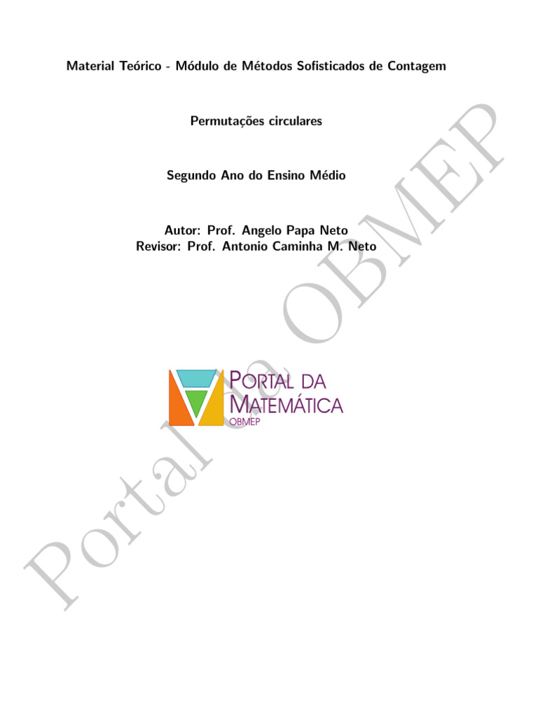com elas é igual a n!. Isso corresponde ao número de per- guinte, fechar a roda. Pelo princı́pio multiplicativo, segue