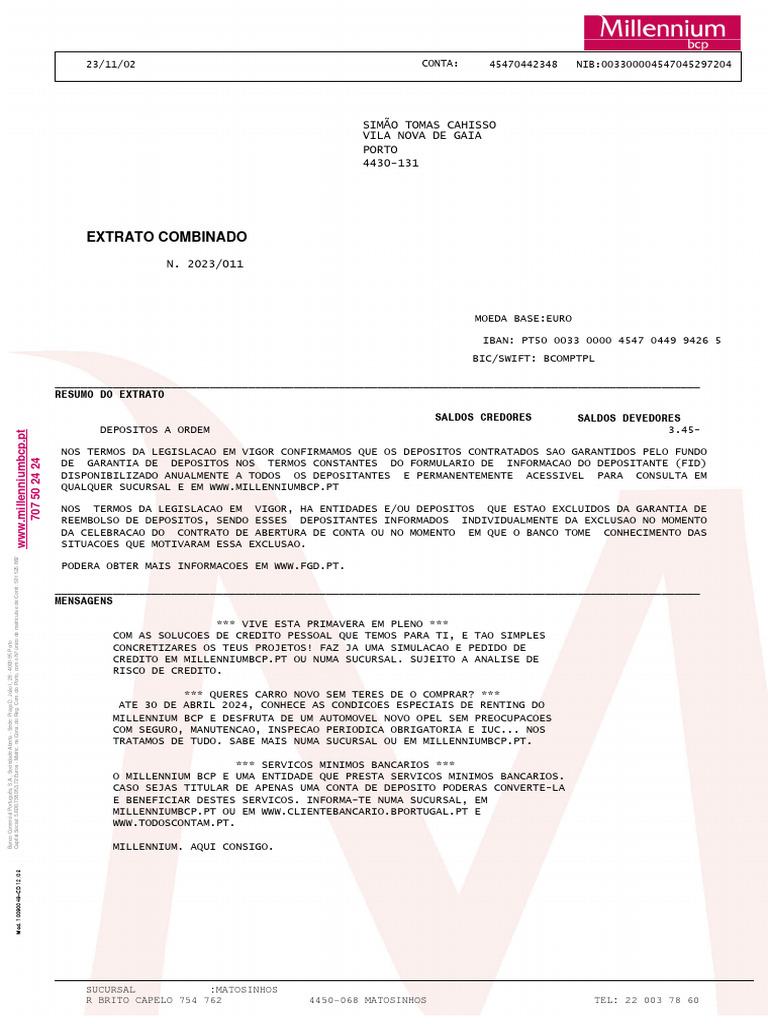 23/11/02 CONTA: 45470442348 NIB:003300004547045297204