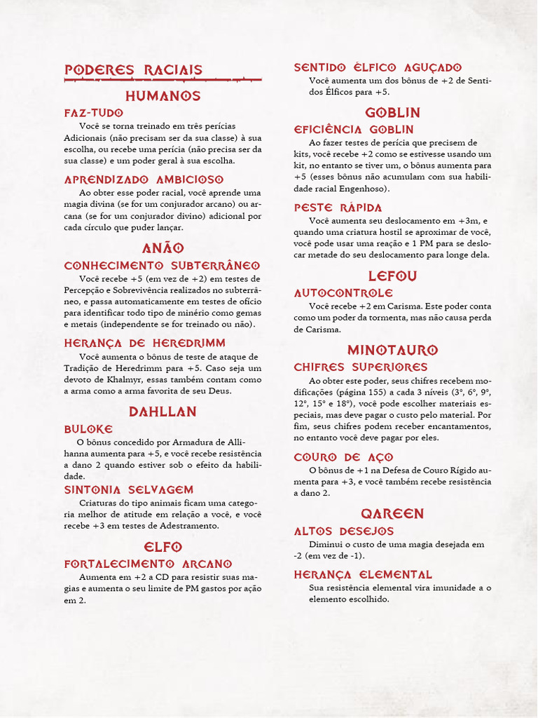 didas pela sua raça), esse traço tem sua CD au-