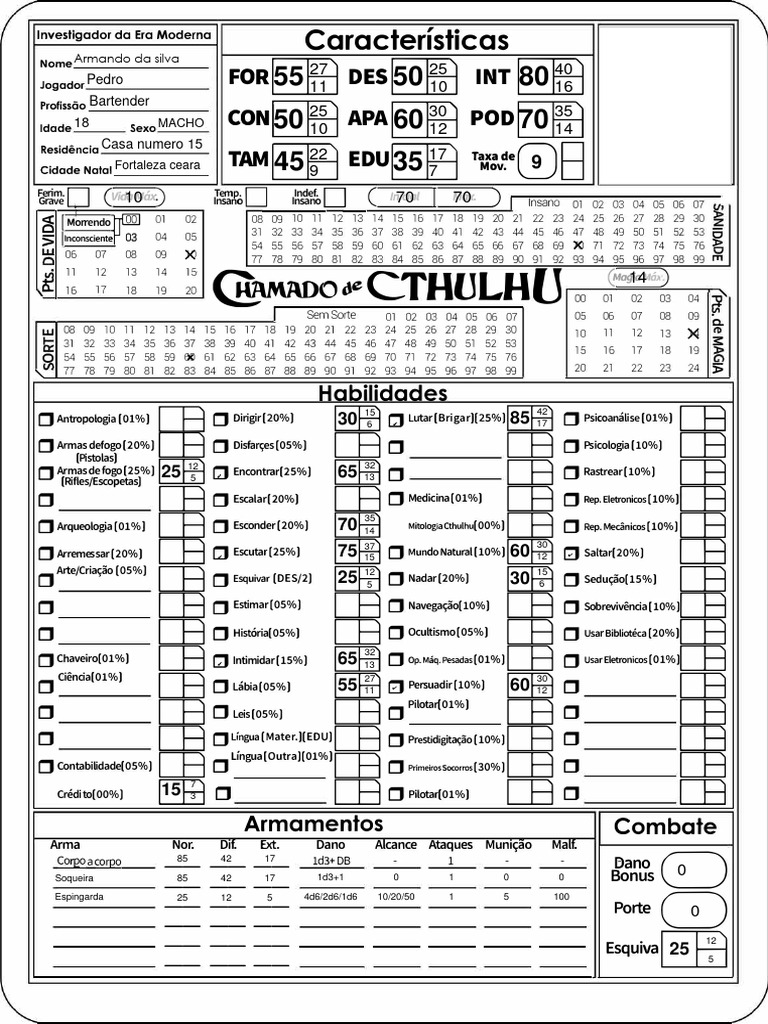 O Esquivar (D ES/2) 25 Nadar(20%) Seduc;ao[15%)