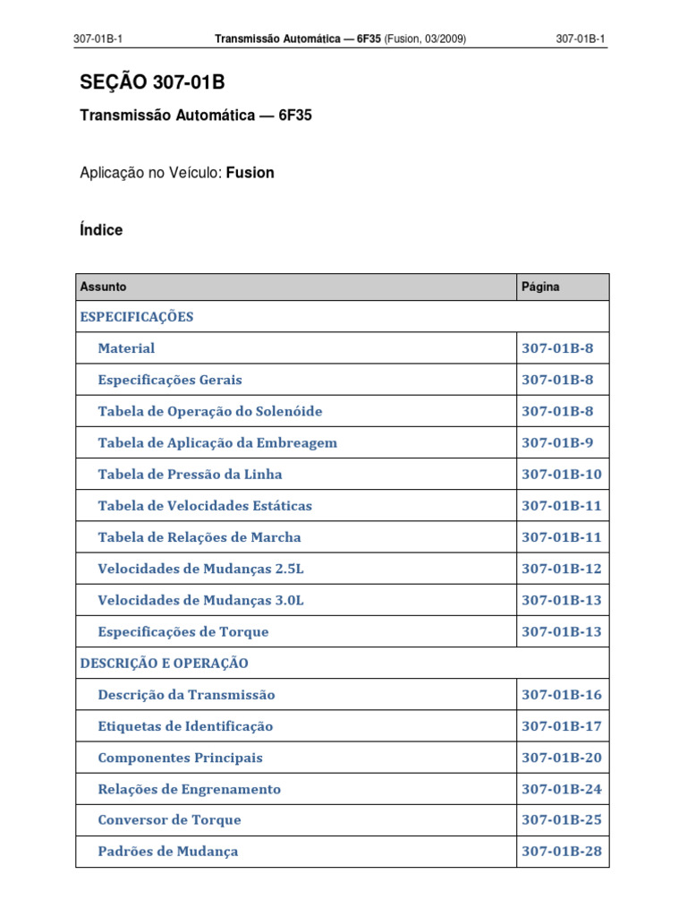 307-01B-6 Transmissão Automática — 6F35 (Fusion, 03/2009) 307-01B-6