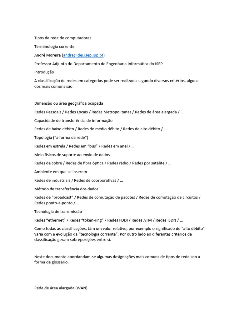 Neste documento abordandam-se algumas designações mais comuns de tipos de rede sob a