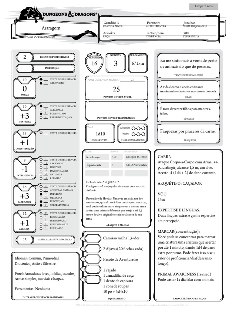 TM & © 2014 Wizards of the Coast LLC. Permission is granted to photocopy this document for personal use.. Traduzido pela Comunidade D&D Next