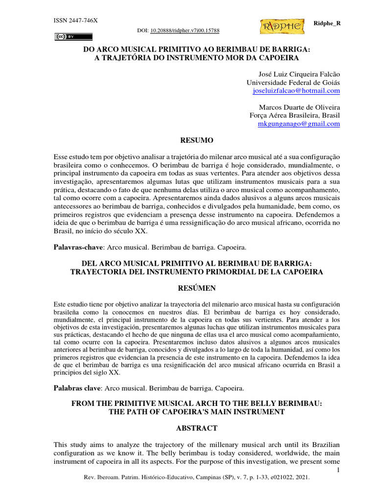 instrument of capoeira in all its aspects. For the purpose of this investigation, we present some