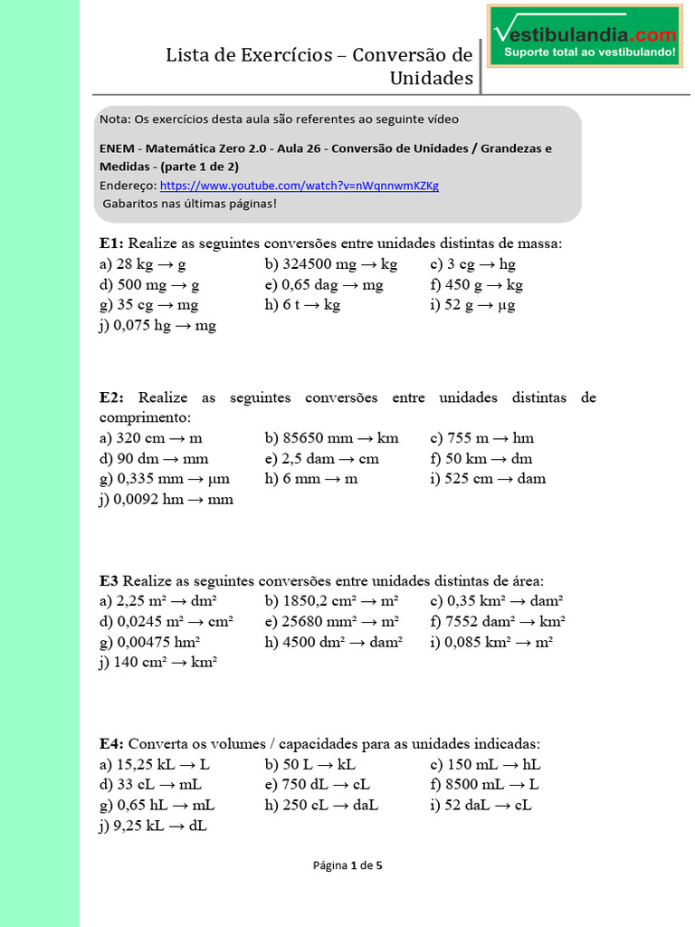 ENEM - Matemática Zero 2.0 - Aula 26 - Conversão de Unidades / Grandezas e