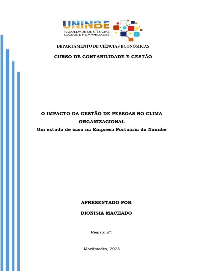 organizacional, podendo perspectivar as pesquisas na empresa Portuária do Namibe, sendo