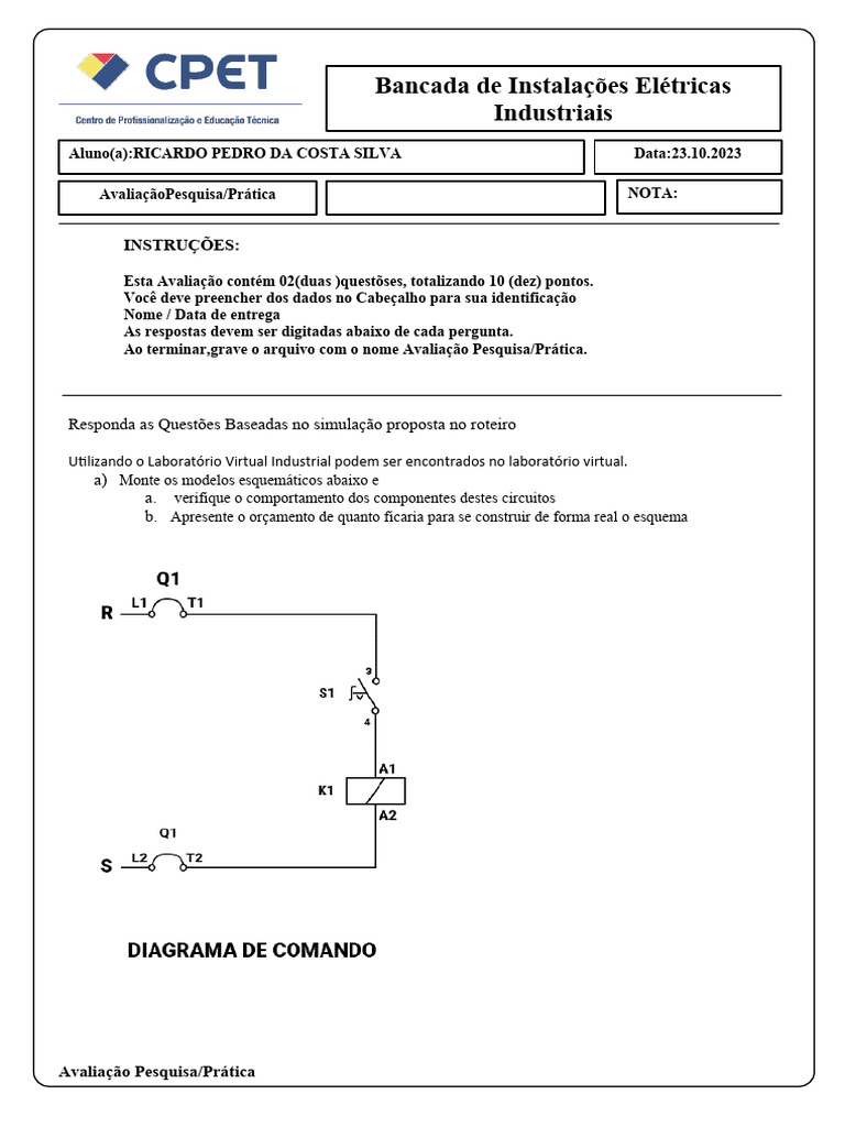 Aluno(a):RICARDO PEDRO DA COSTA SILVA Data:23.10.2023