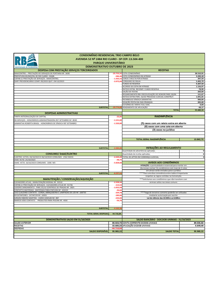 DEMONSTRATIVO OUTUBRO DE 2023