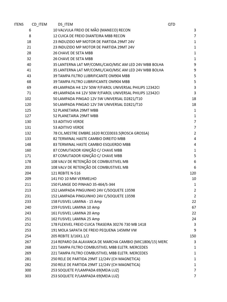 ITENS CD_ITEM DS_ITEM QTD