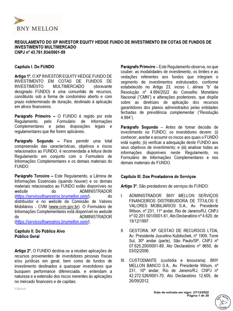 REGULAMENTO DO XP INVESTOR EQUITY HEDGE FUNDO DE INVESTIMENTO EM COTAS DE FUNDOS DE