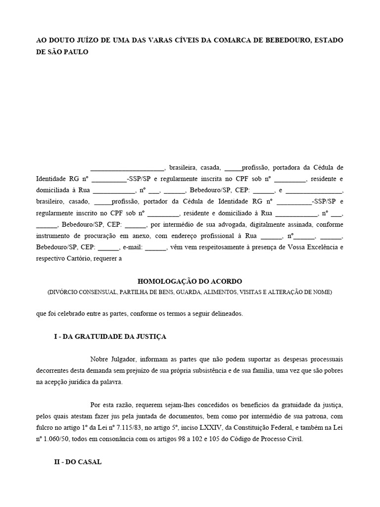 (DIVÓRCIO CONSENSUAL, PARTILHA DE BENS, GUARDA, ALIMENTOS, VISITAS E ALTERAÇÃO DE NOME)