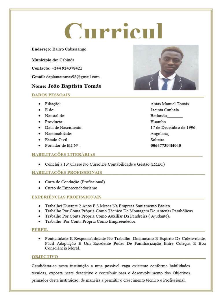 Filiação: Abias Manuel Tomás