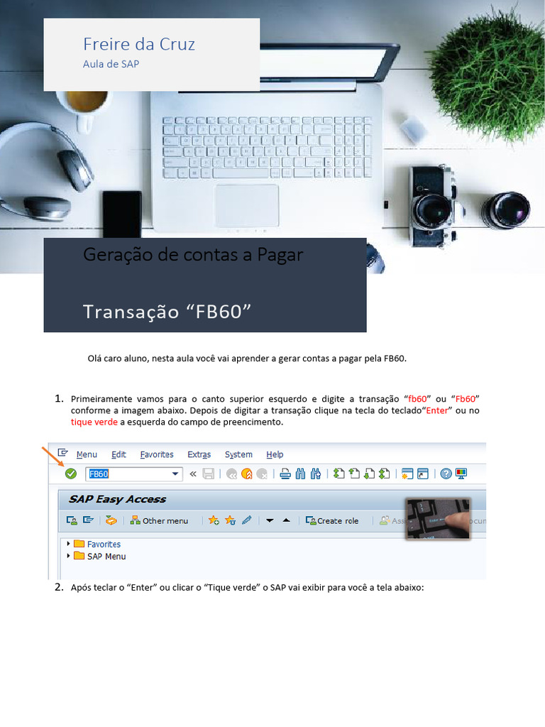 Olá caro aluno, nesta aula você vai aprender a gerar contas a pagar pela FB60.