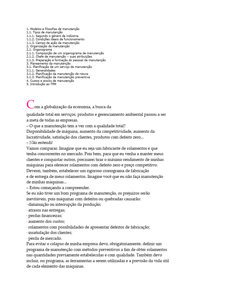Todos esses aspectos mostram a importância que se deve dar à manutenção.