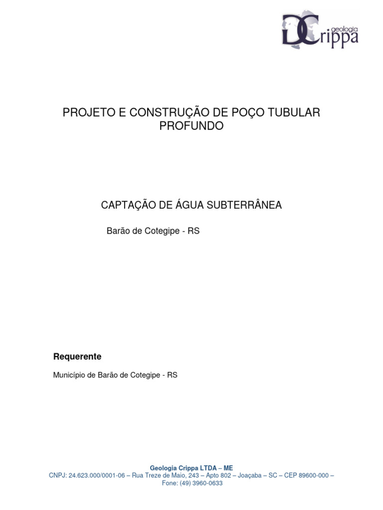 Apresentação de um projeto de perfuração de poço tubular profundo de