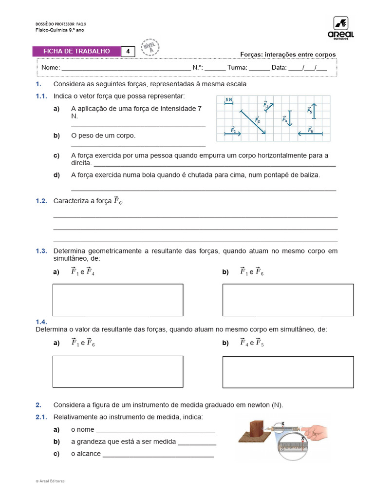 3. Representa as forças descritas em cada um dos enunciados, respeitando as escalas