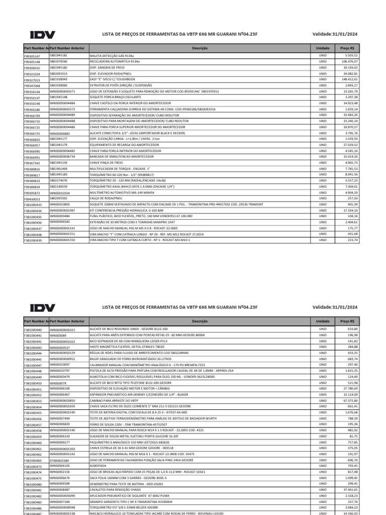 LISTA DE PREÇOS DE FERRAMENTAS DA VBTP 6X6 MR GUARANI Nº04.23F Validade:31/01/2024