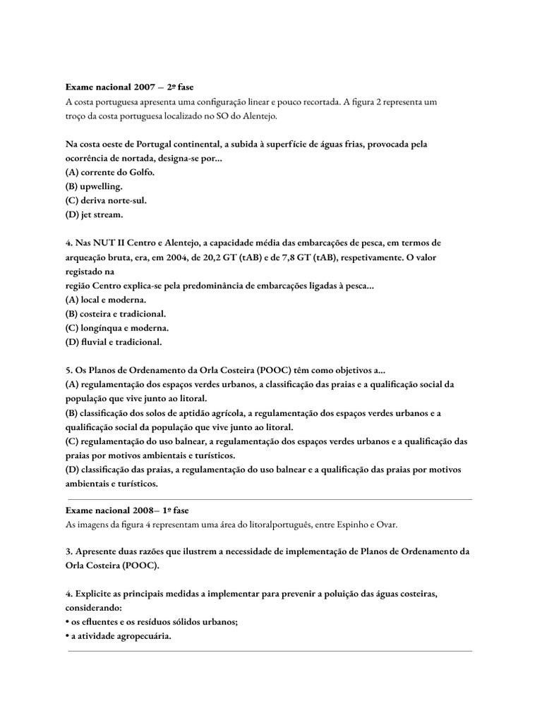 5. Os Planos de Ordenamento da Orla Costeira (POOC) têm como objetivos a...