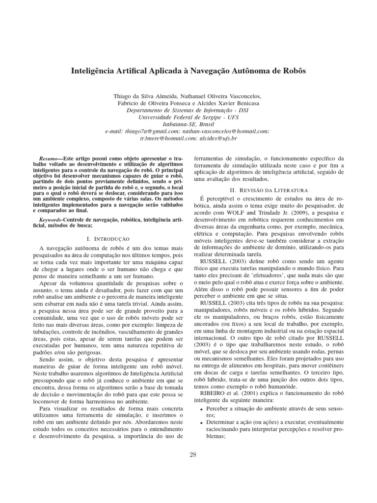 Keywords-Controle de navegação, robótica, inteligência arti- desenvolvimento em robótica requerem conhecimentos em