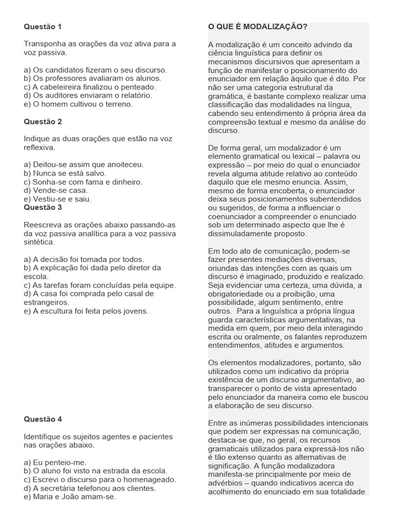 Transponha as orações da voz ativa para a A modalização é um conceito advindo da