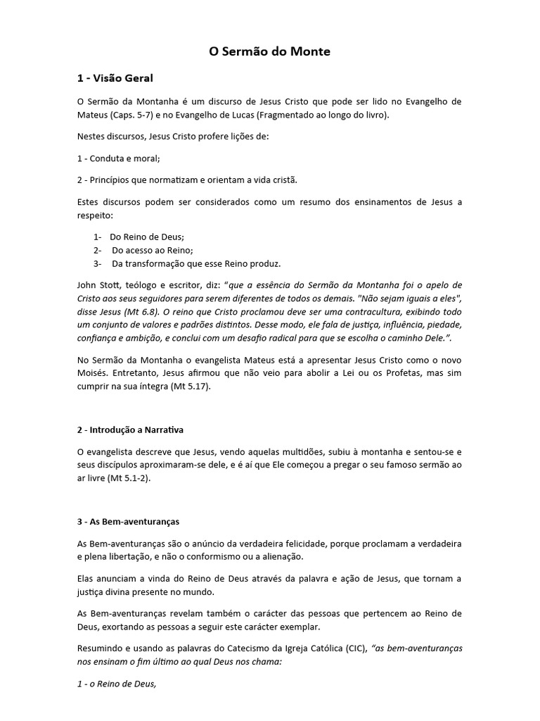 John Stott, teólogo e escritor, diz: “que a essência do Sermão da Montanha foi o apelo de
