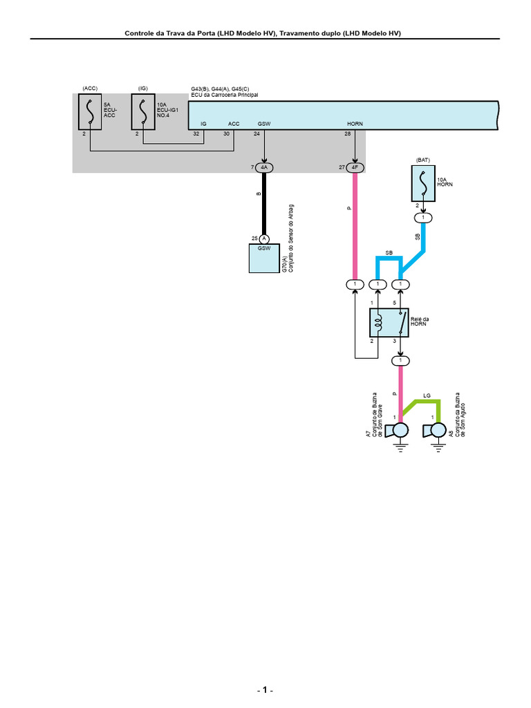 Controle da Trava da Porta (LHD Modelo HV), Travamento duplo (LHD Modelo HV)
