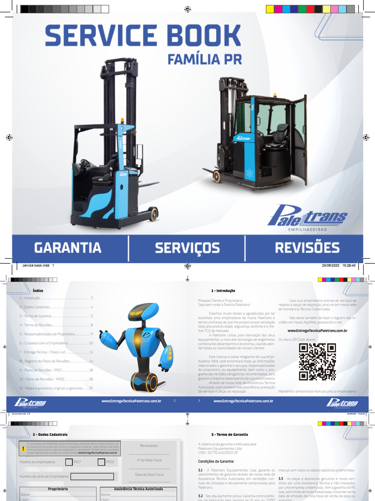 3 - Termo de Garantia..........................................................................5 escolhido uma empilhadeira da marca Paletrans e Não deixe também de fazer o registro das re-