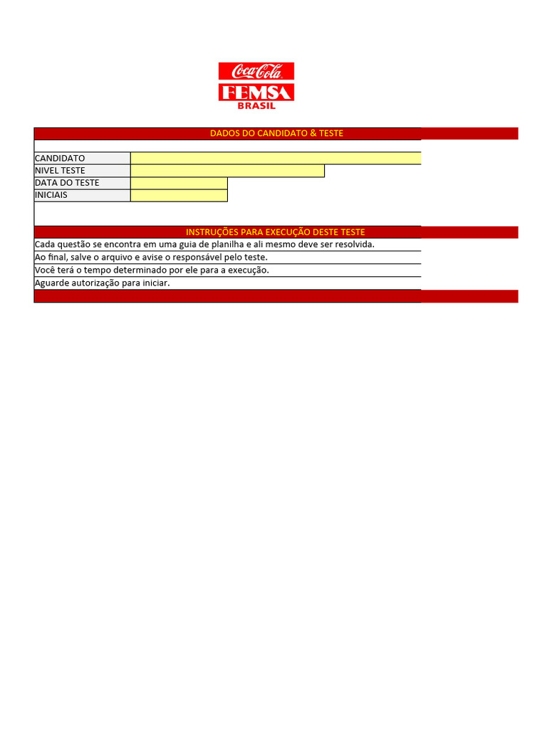 INSTRUÇÕES PARA EXECUÇÃO DESTE TESTE