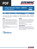 DADOS TÉCNICOS DO GRUPO MOTOR GERADOR (ITENS DE SÉRIE) Os geradores no modo Stand-by são destinados apenas para situações de