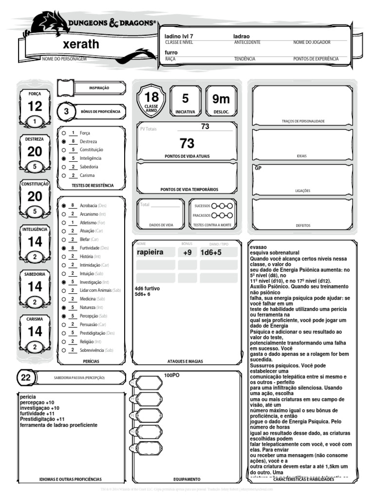 NOME DO PERSONAGEM RAÇA TENDÊNCIA PONTOS DE EXPERIÊNCIA