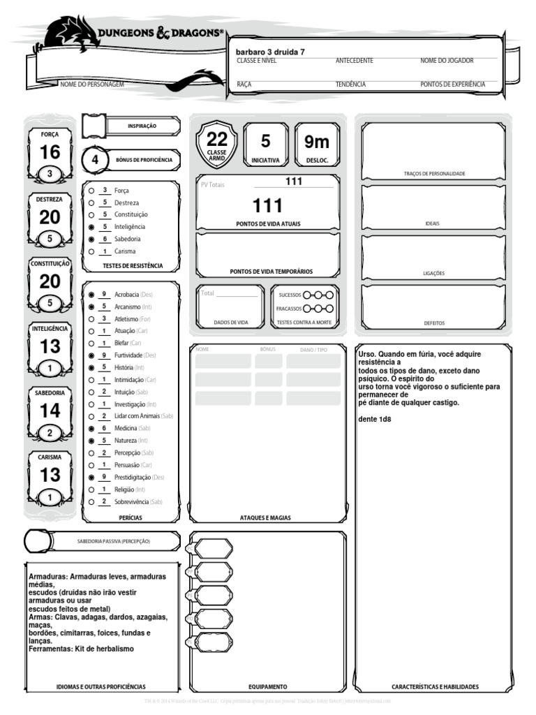 NOME DO PERSONAGEM RAÇA TENDÊNCIA PONTOS DE EXPERIÊNCIA