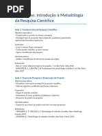Introdução ao Projeto de Pesquisa Científica. 39aedição. Petrópolis: VOZES, 2011. 144p.