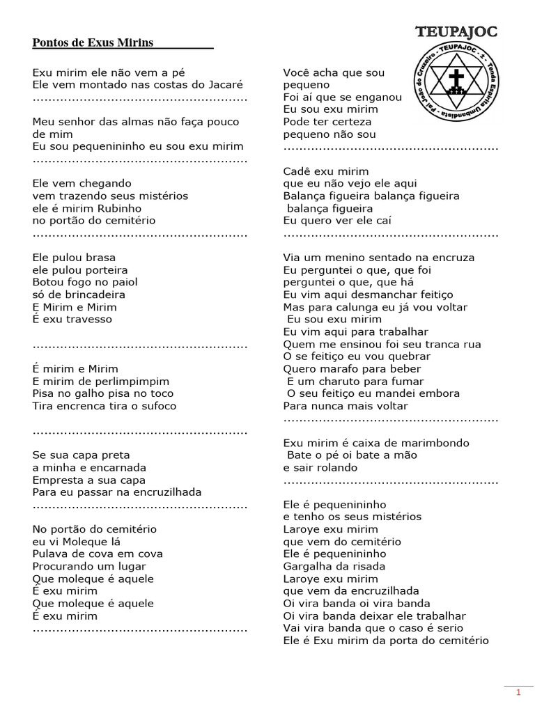 Eu sou pequenininho eu sou exu mirim .......................................................