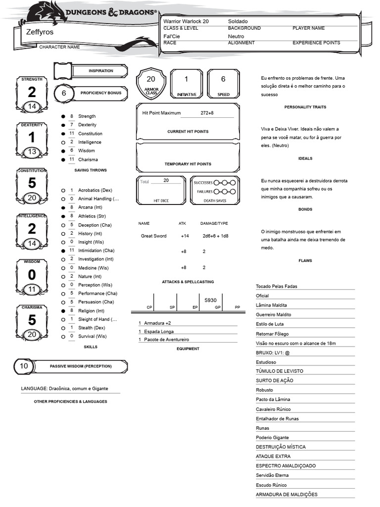 LANGUAGE: Dracônica, comum e Gigante Robusto