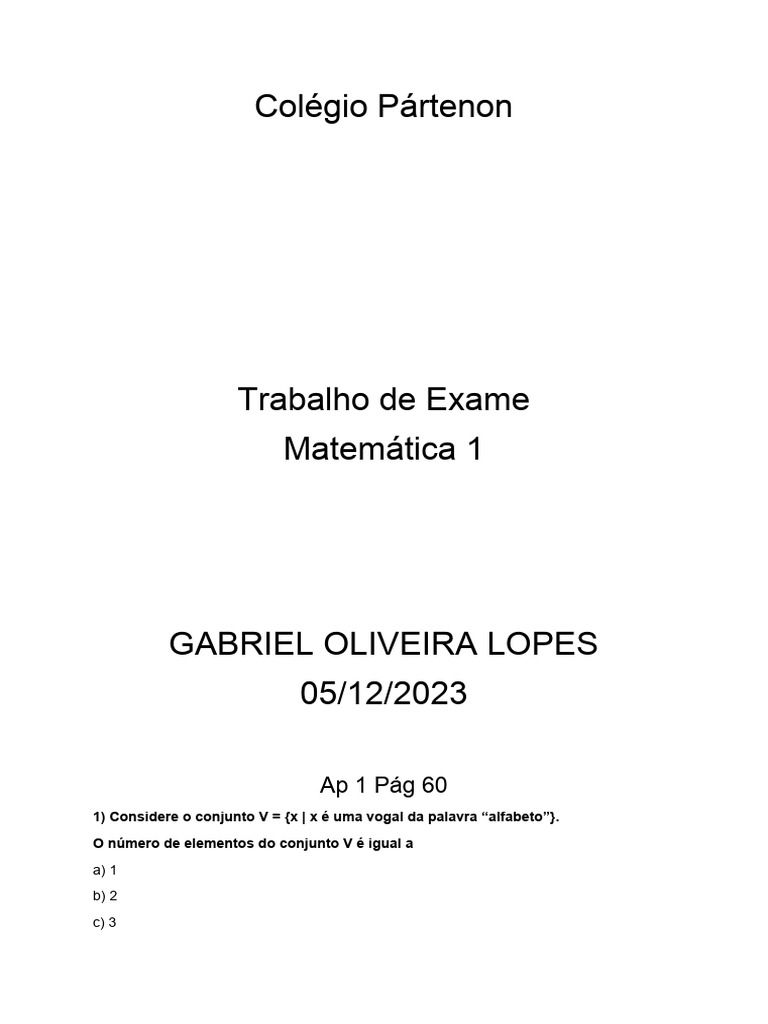 1) Considere o conjunto V = {x | x é uma vogal da palavra “alfabeto”}.