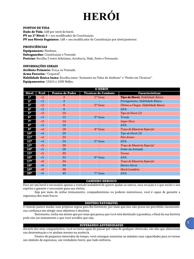A partir do 1º nível, ao iniciar como herói, deve ser definido qual caminho heroico você vai seguir. Cada um desses