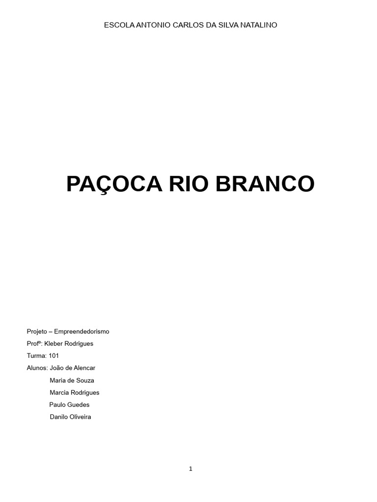 1.1 Nome da Empresa: Paçoca Rio Branco