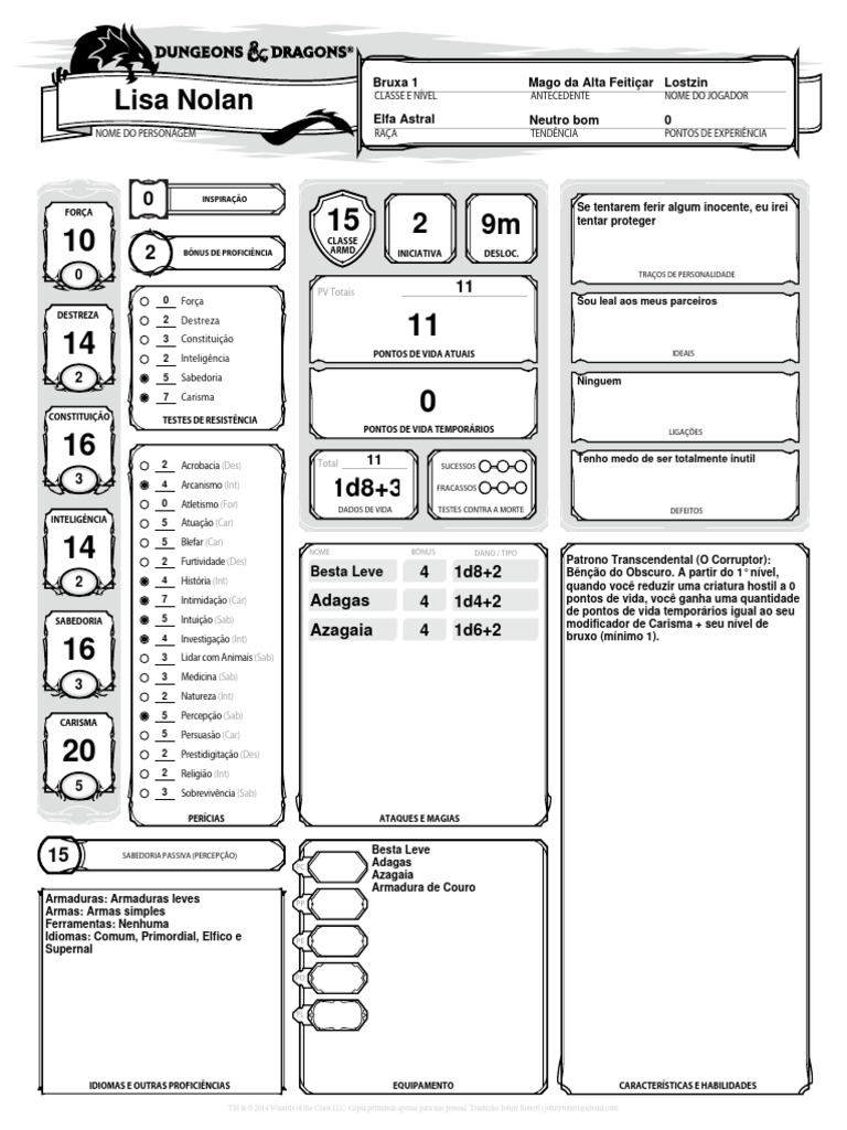 NOME DO PERSONAGEM RAÇA TENDÊNCIA PONTOS DE EXPERIÊNCIA