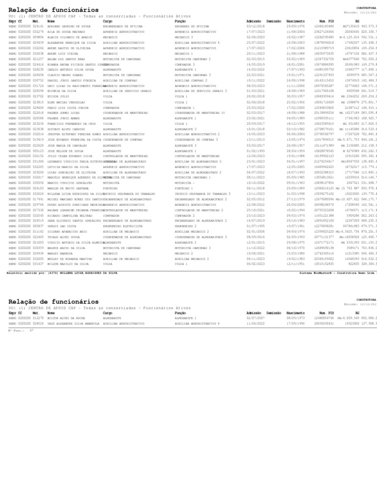 REMO 0200200 026936 WARLEY BARBOSA MECANICO MECANICO 2 10/06/2021 15/03/1980 12742369114 11013385 046.466.5