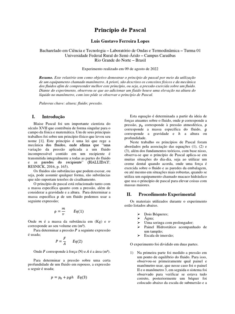 nome [1]. Este princípio é uma lei que rege a Neste trabalho os princípios de Pascal foram